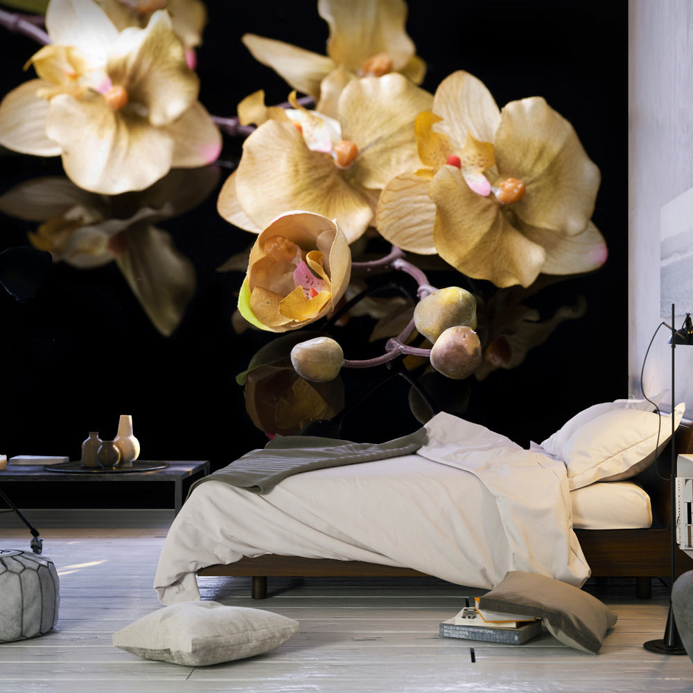 Papier peint intissé Fleurs Orchids in ecru color : Taille - 250 x 193 cm
