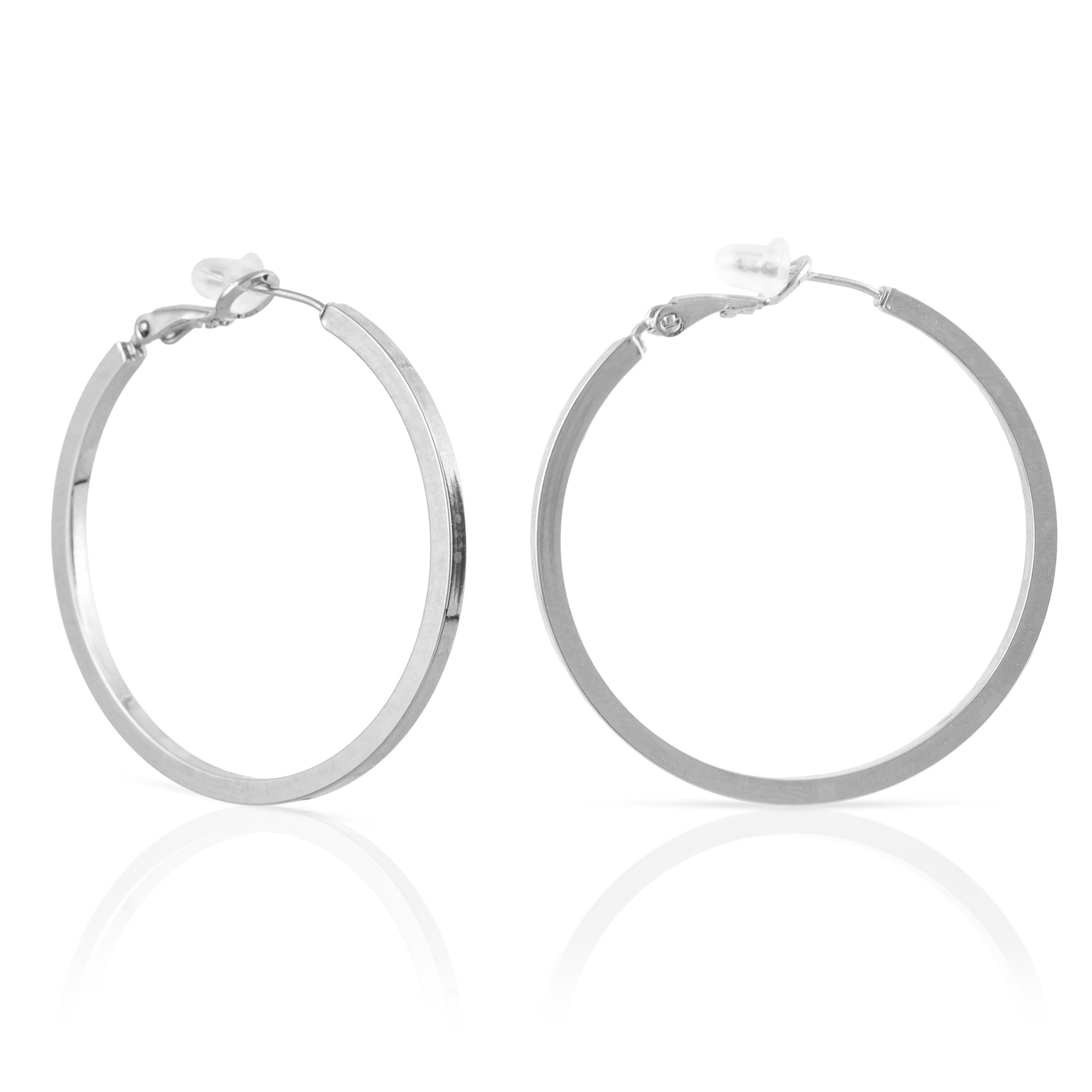 Boucles d'oreilles en cuivre à cerceau plat avec revêtement électroplaqué, 40 mm, avec fermoir catalan en argent sterling 925.