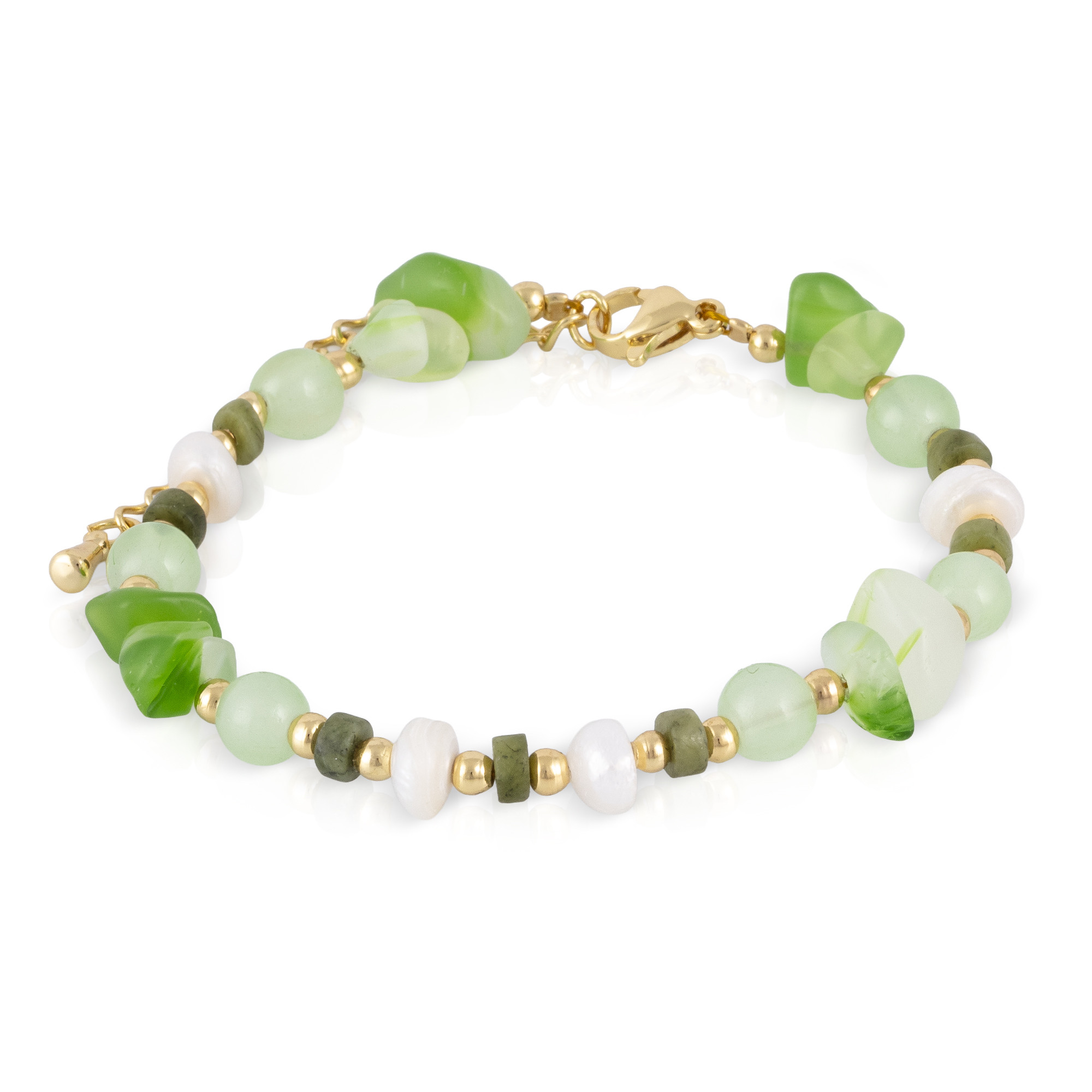 Bracelet en agate verte et perles naturelles, avec fermoir mousqueton.