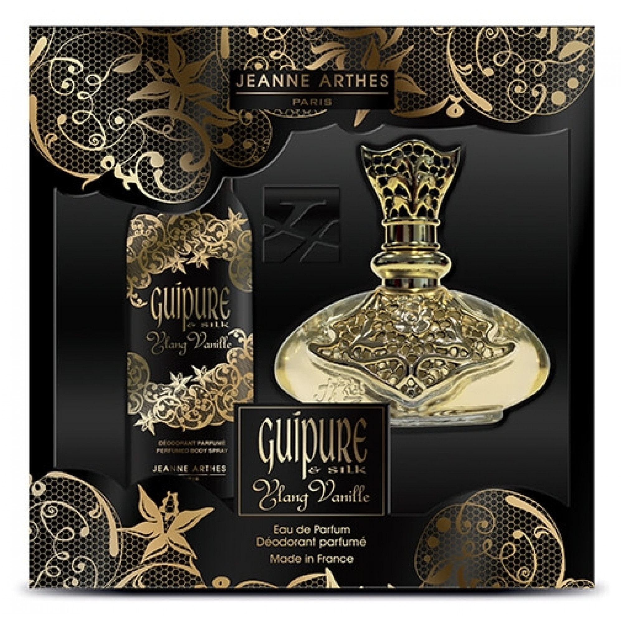 Découvrez le coffret Jeanne Arthes Guipure & Silk Ylang Vanille, un ensemble envoûtant de parfum et de déodorant qui vous transporte dans une expérience sensorielle orientale et gourmande. Ce coffret duo est composé de l'eau de parfum Guipure and Silk Ylang Vanille et d'un déodorant, offrant ainsi une combinaison parfaite pour une femme passionnée qui aime ajouter une touche d’exotisme à sa vie. Laissez-vous séduire par les notes enivrantes de noix de coco et de prune en tête, suivies par l'Ylang Ylang et le bois de cèdre, pour finir par les nuances sensuelles de vanille et de musc. Le parfum est présenté en flacon de 100ml et le déodorant en format généreux de 150ml. Plongez dans l'univers envoûtant du coffret Jeanne Arthes Guipure & Silk Ylang Vanille, où la passion et l’exotisme se marient pour créer une expérience olfactive captivante. L'eau de parfum dévoile des notes de noix de coco et de prune en tête, suivies par l'Ylang Ylang et le bois de cèdre, pour finalement laisser place à la chaleur envoûtante de la vanille et du musc. Cette fragrance capture la sensualité et l'audace de la femme qui sait ce qu'elle veut. Le déodorant, quant à lui, prolonge cette expérience olfactive unique tout en offrant une protection efficace. Offrez-vous ce coffret Guipure & Silk Ylang Vanille pour une touche d'exotisme au quotidien. Le coffret Jeanne Arthes Guipure & Silk Ylang Vanille offre une expérience parfumée exquise, mettant en avant une combinaison envoûtante de parfum et de déodorant. Laissez-vous séduire par les notes enivrantes de noix de coco, de prune, d'Ylang Ylang, de bois de cèdre, de vanille et de musc qui évoquent la passion et la sensualité. Ce coffret est le choix idéal pour la femme moderne et passionnée qui aime affirmer sa personnalité à travers une fragrance envoûtante et délicate. Profitez de ce duo parfumé pour une expérience sensorielle inoubliable au quotidien.