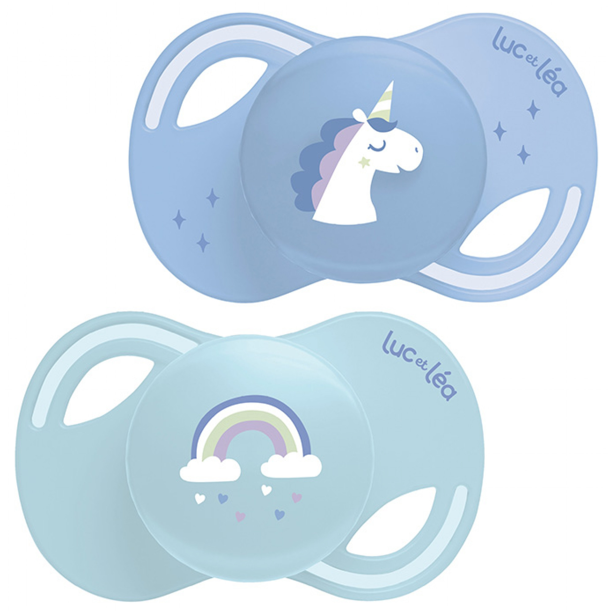 Découvrez les 2 sucettes anatomiques +18 mois Licorne de la collection Luc et Léa, conçues pour offrir à votre enfant une expérience de succion confortable et sécurisée. Recommandées par les dentistes, ces sucettes sont dotées d'une tétine extra-slim en silicone de grade médical, jusqu'à 43% plus fine qu'une sucette anatomique ordinaire. Cette caractéristique innovante favorise un bon développement du palais, des mâchoires et des gencives, réduisant ainsi le risque de mauvais positionnement des dents. De plus, la succion naturelle et confortable facilitée par la téterelle plus petite assure une bonne fermeture de la bouche, limitant la pression exercée sur les dents. Fabriquées en Allemagne, ces sucettes sont le fruit d'un engagement de qualité et de sécurité. La tétine en silicone de grade médical offre résistance, souplesse et douceur, sans risque d'allergie, tandis que la collerette aérée, adaptée aux peaux sensibles, limite les irritations, les rougeurs et les éruptions cutanées. En outre, les larges aérations favorisent un échange d'air continu entre la peau et la sucette, ne marquant pas le visage de bébé. Soumises à des tests rigoureux, ces sucettes sont conformes à la norme européenne EN 1400, garantissant ainsi la sécurité de votre enfant. Pour une tranquillité d'esprit totale, les sucettes anatomiques +18 mois Licorne de Luc et Léa offrent une solution sûre et bien pensée pour accompagner le développement bucco-dentaire de votre enfant. Veuillez noter : Avant chaque utilisation, veuillez examiner attentivement la sucette et la jeter au moindre signe de détérioration ou de fragilité. Stocker à l’abri de la chaleur et de la lumière. Conforme à la norme EN 1400.