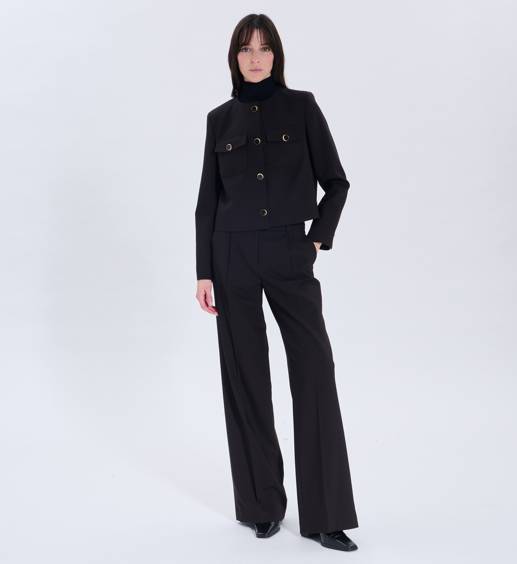 Adoptez cette veste courte nocturne pour une allure tendance et sophistiquée. Sa coupe ajustée mettra en valeur votre silhouette avec élégance. Un essentiel intemporel pour toutes les saisons. Veste courte Coupe ajustée Fermeture boutonnée Deux poches à rabat à l'avant Manches longues Coloris chocolat