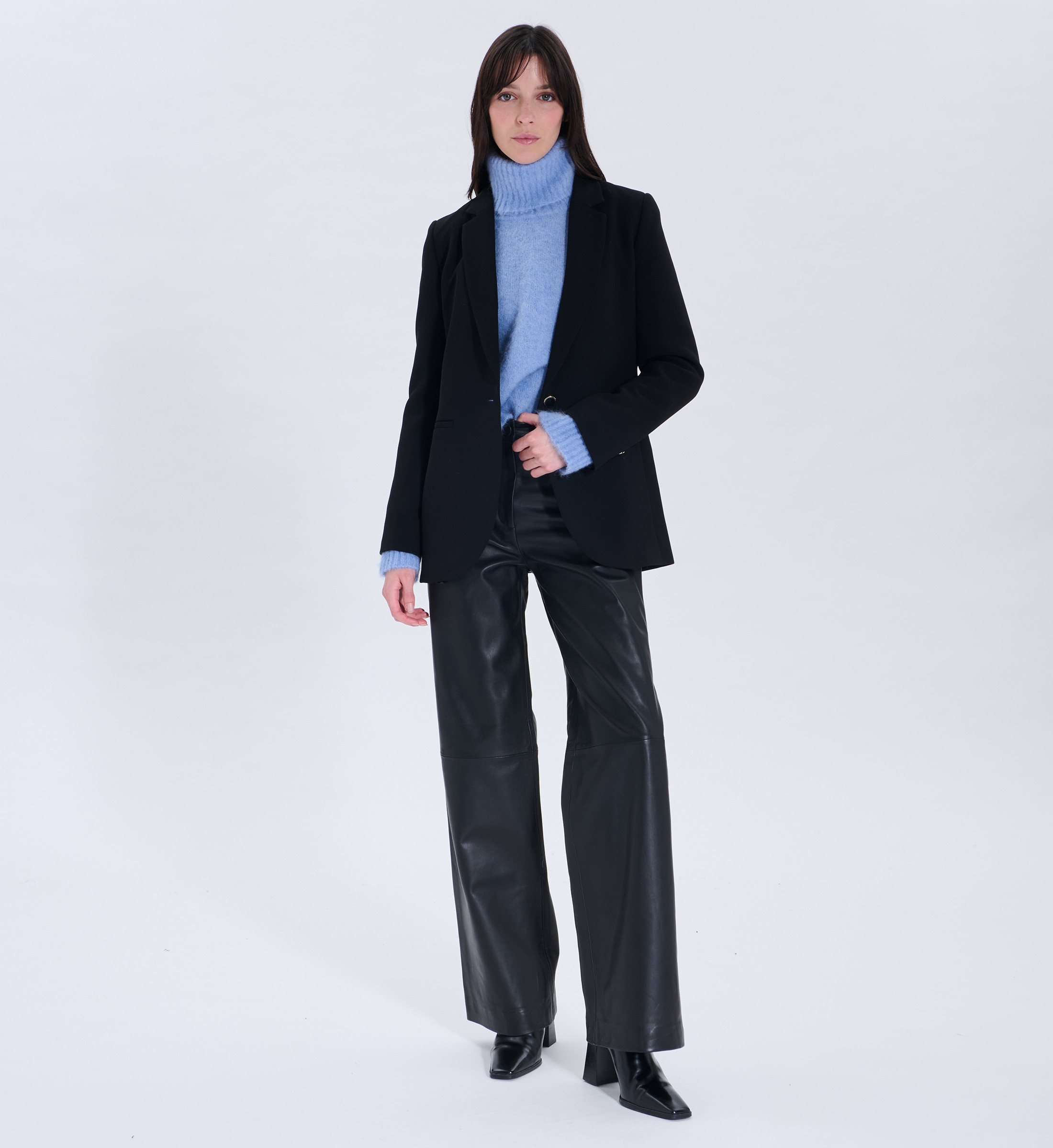 Affirmez votre style avec la veste VICTORINA, un essentiel du vestiaire contemporain. Sa coupe droite structurée, son col tailleur raffiné et son unique bouton ton sur ton rehaussé d’un détail doré en font une pièce forte, à la fois élégante et actuelle. Sa doublure satinée apporte une finition délicate et confortable. À associer avec son pantalon assorti pour une silhouette affirmée et féminine. Veste de tailleur en crêpe Coupe droite Fermeture par un bouton ton sur ton avec détail doré Col tailleur Poches passepoilées Doublure satinée Manches longues Coloris noir