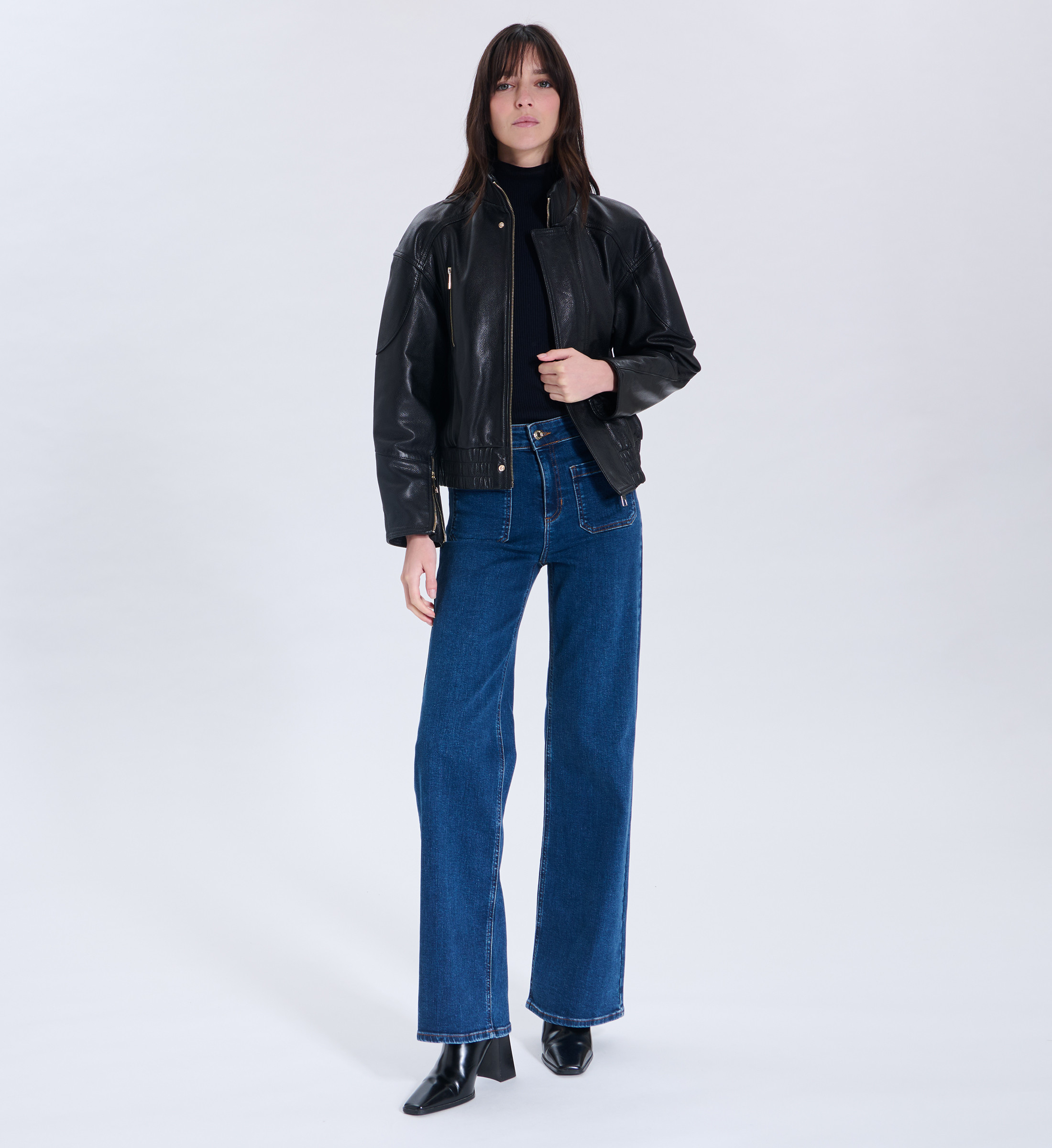 Adoptez le jean parfait pour la belle saison ! Avec sa taille haute flatteuse et ses poches avant soigneusement travaillées, il offre une allure moderne et structurée. Sa coupe flare intemporelle en fait une pièce essentielle du dressing, facile à associer en toute occasion. Jean flare Taille haute Fermeture boutonnée et zippée Grandes poches avant Passants ceinture Coloris bleu