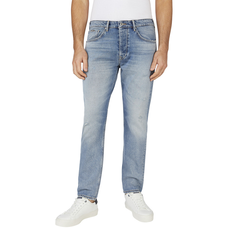 Jean tapered fit bleu de Pepe Jeans, 100% coton, confortable et durable. Ce pantalon à 5 poches avec fermeture bouton et glissière allie style décontracté et élégance pour un usage quotidien.