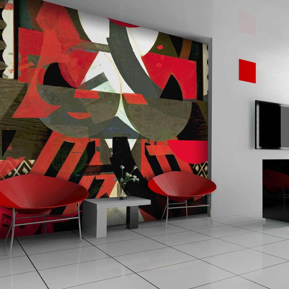 Papier peint intissé Abstractions Composition artistique en rouge : Taille - 350 x 270 cm