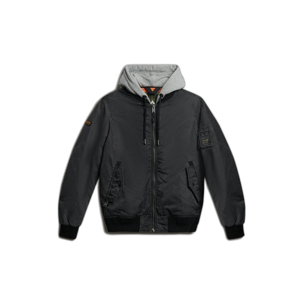 Coupe décontractée - la coupe classique de Superdry. Ni trop serrée ni trop ample. Juste comme il faut. Choisis ta taille habituelle. Capuche fixe à double zip et cordon de serrage réglable. Trois poches extérieures et une poche intérieure à bouton-pression. Poignets et ourlet côtelés. Tissu en sergé et écussons signature sur les deux manchesVersion urbaine d'un classique Superdry. Le bomber militaire MA1 est pensé dans les moindres détails : sa capuche fixe crée l'illusion d'une superposition tandis que ses écussons robustes sur les deux manches rehaussent l'ambiance vintage et usée. Idéal pour rafraîchir ta garde-robe de saison il te permet d'afficher facilement ton style lorsque les températures baissent.