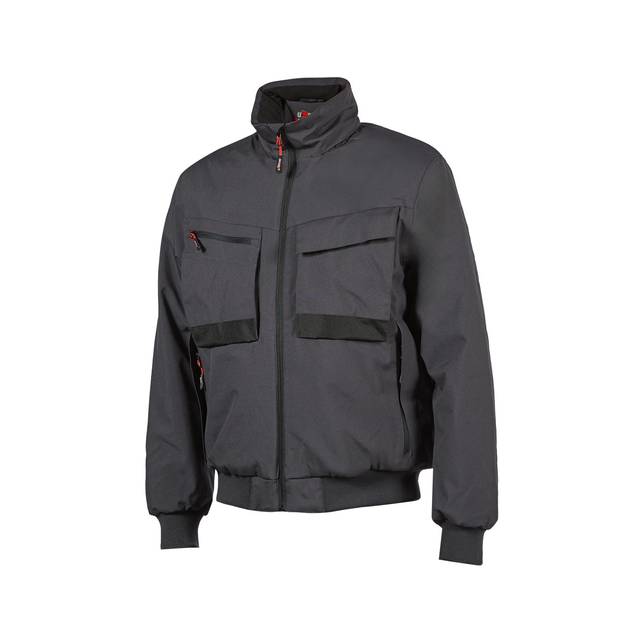 Blouson bombardier d'hiver rembourré, léger mais durable. Capuche rétractable réglable avec cordon de serrage élastique. Tissu déperlant , emmanchures et coutures d'épaules thermosoudées. Col intérieur en micropolaire douce , ourlet et poignets côtelés élastiques. Bombers multi-poches confortable et fonctionnelle. Deux poches chauffe-mains zippées sur le devant. Deux poches multifonctionnelles sur la poitrine : celle de droite fermée par une fermeture à glissière et dotée d'un compartiment à stylos, celle de gauche fermée par un rabat et une fermeture velcro et une poche supplémentaire fermée par une fermeture à glissière verticale avec des dents de couleur contrastée. En plus des poches frontales, il y a deux très grandes poches intérieures sur le bas, une poche en filet à droite et une poche zippée à gauche, et enfin une poche verticale sur la poitrine à gauche fermée par une fermeture à glissière. Le design de cette veste de travail est enrichi par la présence du logo réfléchissant « tête de lion » sur la manche droite et du logo réfléchissant « U-Power » sur l'épaule arrière gauche. Ouverture interne au dos pour permettre la personnalisation de la veste de travail et faciliter l'impression et la broderie.