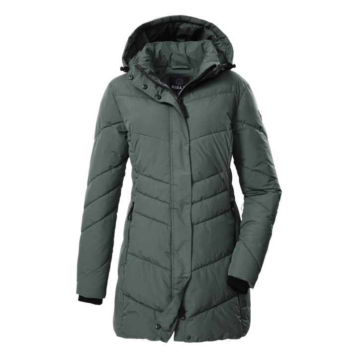 Manteau fonctionnel en apparence duvet avec capuche amovible 100 % polyester Revêtement PU, colonne d'eau 10 000 mm, déperlant, traitement sans PFAs Polyester uni, 100 % polyester (recyclé) Polyester uni, 100 % polyester (recyclé) Le manteau fonctionnel pour femmes en apparence duvet de G.I.G.A. DX se distingue par sa coupe ajustée et son matelassage flatteur. Le manteau matelassé est déperlant et coupe-vent avec une colonne d'eau de 8 000 mm tout en étant respirant. La capuche réglable peut être détachée si besoin. Les poignets en tricot aux extrémités des manches gardent au chaud et sont particulièrement confortables. Les deux poches latérales se ferment avec des zips pour que rien ne se perde. Une poche pour téléphone à l'intérieur offre un espace supplémentaire. La fermeture éclair à deux voies cachée peut s'ouvrir par le haut et par le bas, permettant ainsi une liberté de mouvement. De plus, elle est dotée d'une protection pour le menton pratique. killtec tient particulièrement à rendre ses collections plus durables et à l'avenir. Ainsi, killtec mise davantage sur des méthodes de fabrication plus responsables. Ce manteau a donc été traité sans PFAs et fabriqué en partie à partir de matériaux recyclés. - Manteau fonctionnel matelassé pour femmes avec capuche amovible - Déperlant (8 000 mm), respirant, coupe-vent - Poches zippées, poche intérieure, matelassage flatteur - Fermeture éclair à deux voies cachée avec protection pour le menton - Traitement sans PFAs, matériau recyclé