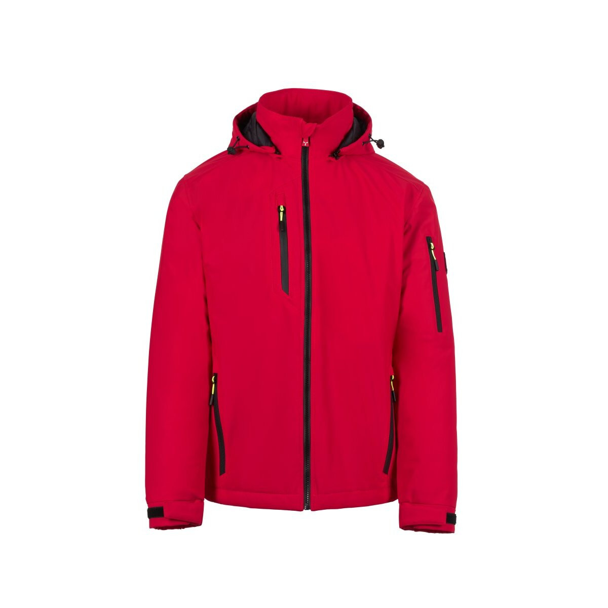 WP 8000 mm H₂O, WVT 5000 g/m² 24h Soft-shell avec rembourrage léger de 100 g/m², pour homme, fermeture par zip SBS avec curseur en métal à verrouillage semi-automatique et tirette personnalisée. Capuche amovible, avec coulisse réglable. Bandes rétroréfléchissantes à l'arrière de la taille et à l'arrière de la capuche. Poignets élastiques, réglables avec fermeture autoagrippante. Deux poches latérales avec zip, une poche poitrine avec zip enduit et une poche sur le bras gauche avec porte-stylos intégré, fermée par zip. Tirettes fluorescentes. Une poche passepoilée intérieure, avec fermeture autoagrippante. Bas réglable avec stoppeurs personnalisés. - Composition: 78% NYLON + 22% ÉLASTHANNE - Aspect: SOFT-SHELL - Poids: 180 GR/MQ - Emballage: 1/10