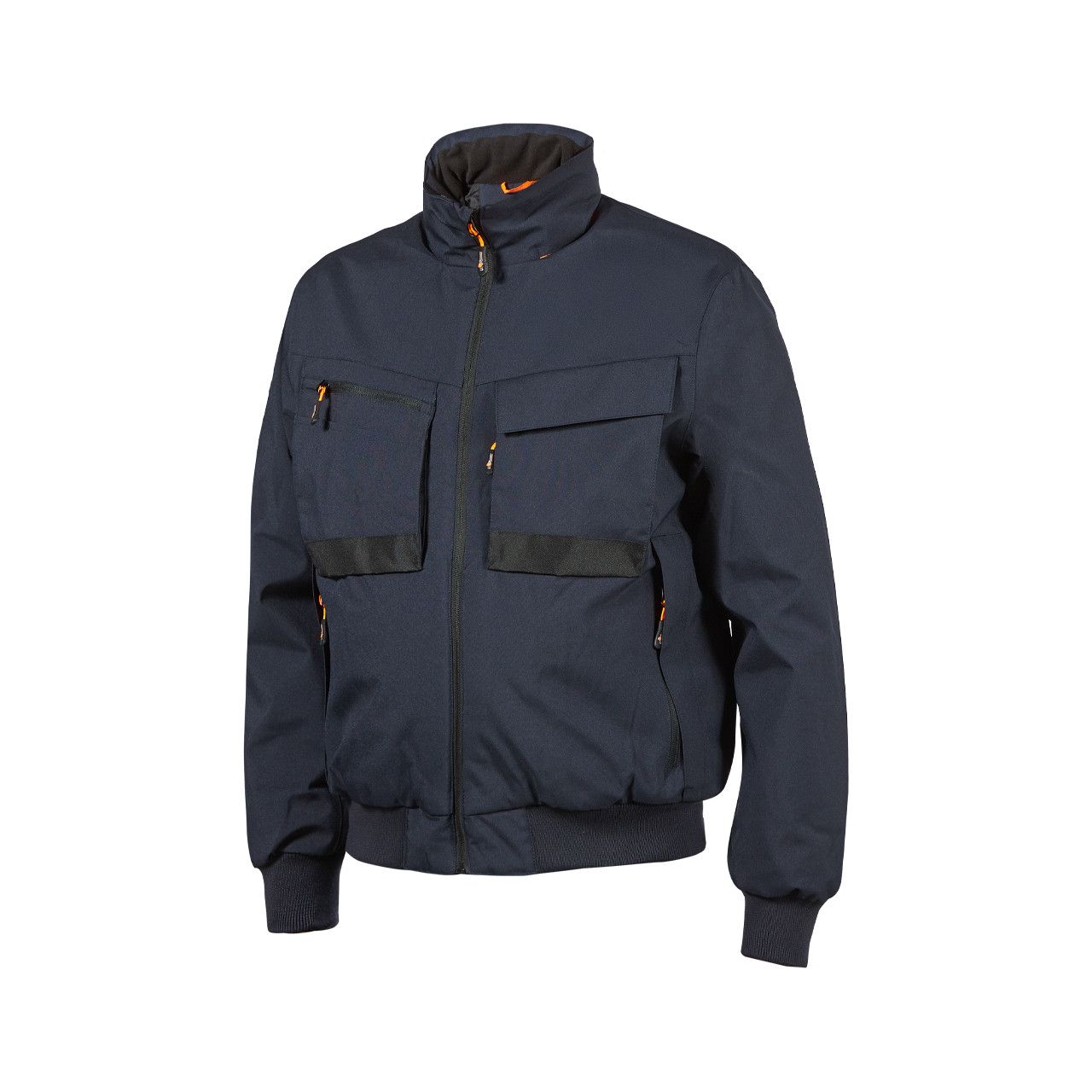 Blouson bombardier d'hiver rembourré, léger mais durable. Capuche rétractable réglable avec cordon de serrage élastique. Tissu déperlant , emmanchures et coutures d'épaules thermosoudées. Col intérieur en micropolaire douce , ourlet et poignets côtelés élastiques. Bombers multi-poches confortable et fonctionnelle. Deux poches chauffe-mains zippées sur le devant. Deux poches multifonctionnelles sur la poitrine : celle de droite fermée par une fermeture à glissière et dotée d'un compartiment à stylos, celle de gauche fermée par un rabat et une fermeture velcro et une poche supplémentaire fermée par une fermeture à glissière verticale avec des dents de couleur contrastée. En plus des poches frontales, il y a deux très grandes poches intérieures sur le bas, une poche en filet à droite et une poche zippée à gauche, et enfin une poche verticale sur la poitrine à gauche fermée par une fermeture à glissière. Le design de cette veste de travail est enrichi par la présence du logo réfléchissant « tête de lion » sur la manche droite et du logo réfléchissant « U-Power » sur l'épaule arrière gauche. Ouverture interne au dos pour permettre la personnalisation de la veste de travail et faciliter l'impression et la broderie.