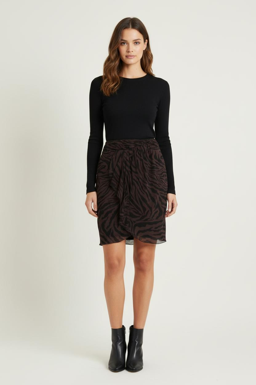 Jupe Drapée Marron et Noir - Taille L/40 de la marque ba&sh.