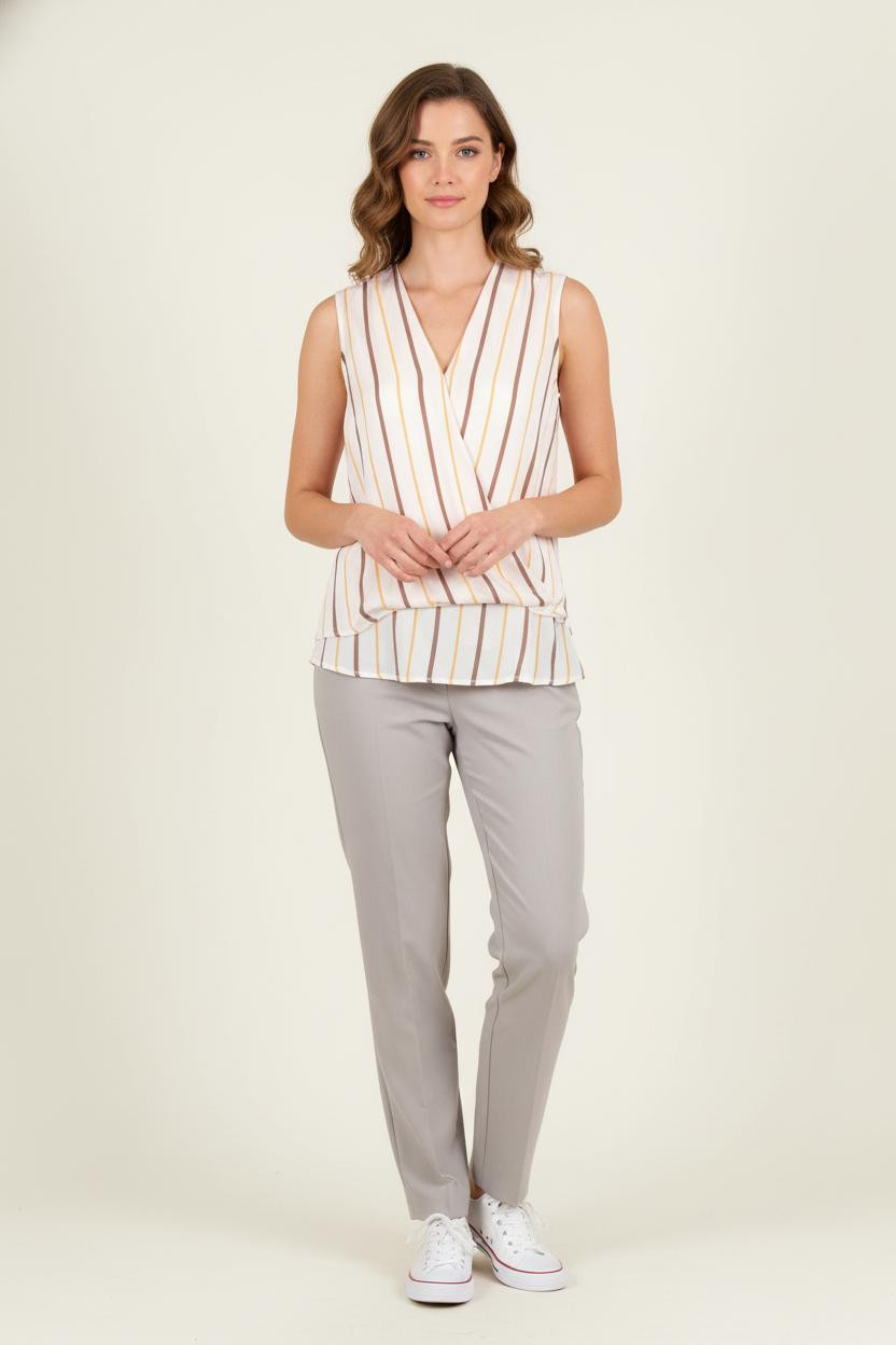 Blouse Rayée Beige et Marron - Taille M/38 de la marque La Fée Maraboutée.