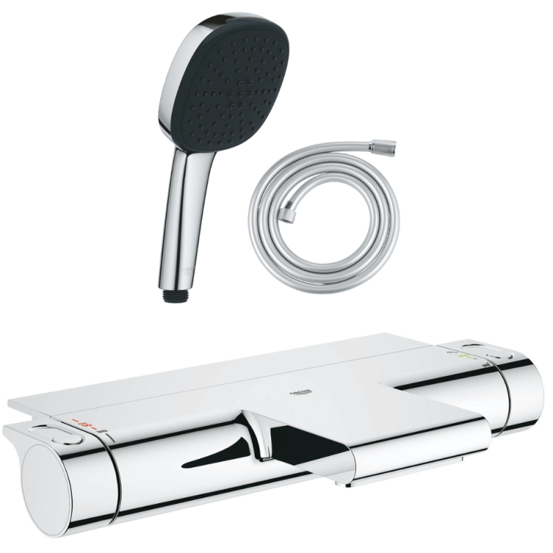 Pack mitigeur bain thermostatique Grohtherm 2000 + Douchette 2 jets Vitalio Comfort 110 + Flexible