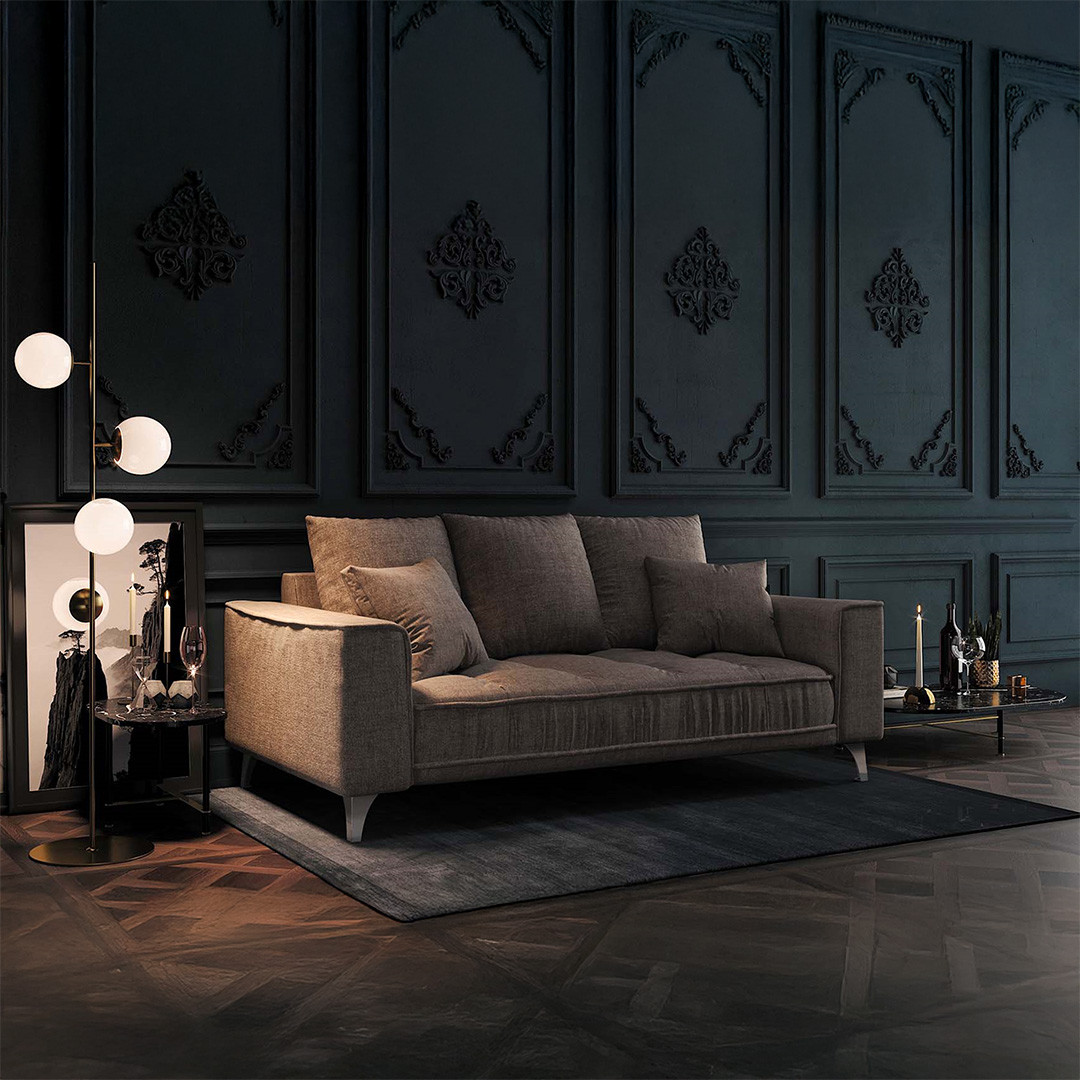 Chloé, canapé 2,5 places beige foncé