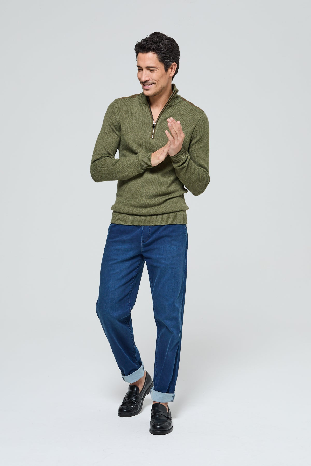 Pantalon homme à la coupe relaxe confectionné dans un mélange de coton doux et d'élasthanne, il offre une liberté de mouvement optimale tout en conservant une belle tenue tout au long de la journée.