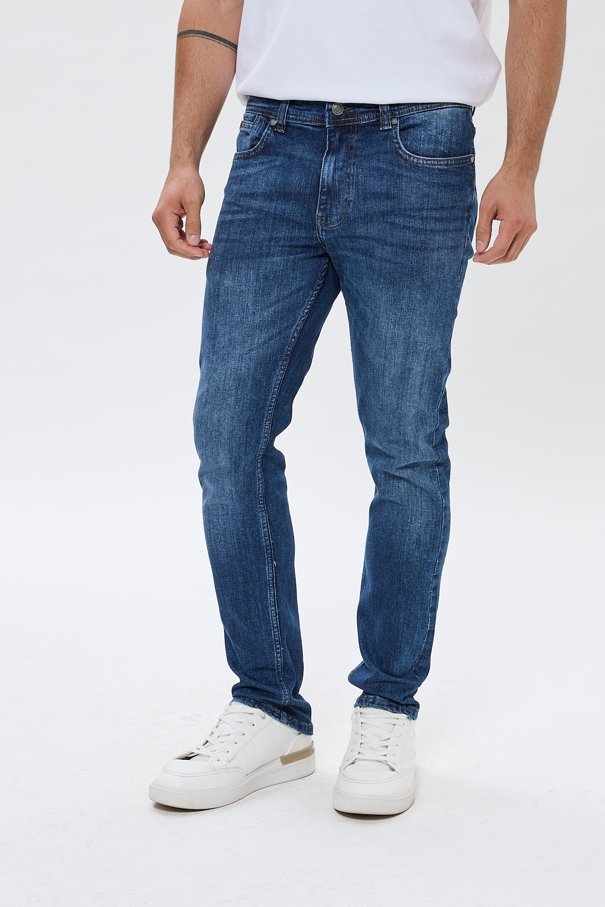 Le JORDY Dark Blue propose une alternative plus soutenue au bleu classique. Sa taille médium garantit équilibre et confort, tandis que la jambe légèrement ajustée affine subtilement la ligne.