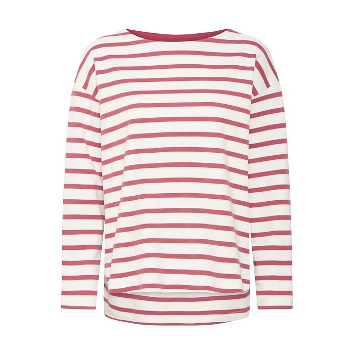 Haut rayé à manches longues avec une silhouette décontractée et un col bateau. Les épaules basses créent un look décontracté, complété par un ourlet droit et une texture douce et lisse.
