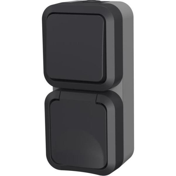 Double Va et Vient + Prise Verticales Aqua Pro Idéal pour l'extérieur, cet ensemble combine une prise 250V~ 16A et un interrupteur 250V 10A. Résistant (IP55), il s'installe aisément et est parfait pour contrôler éclairage et appareils électriques. Conforme aux normes NF, il allie confort et praticité pour vos espaces extérieurs