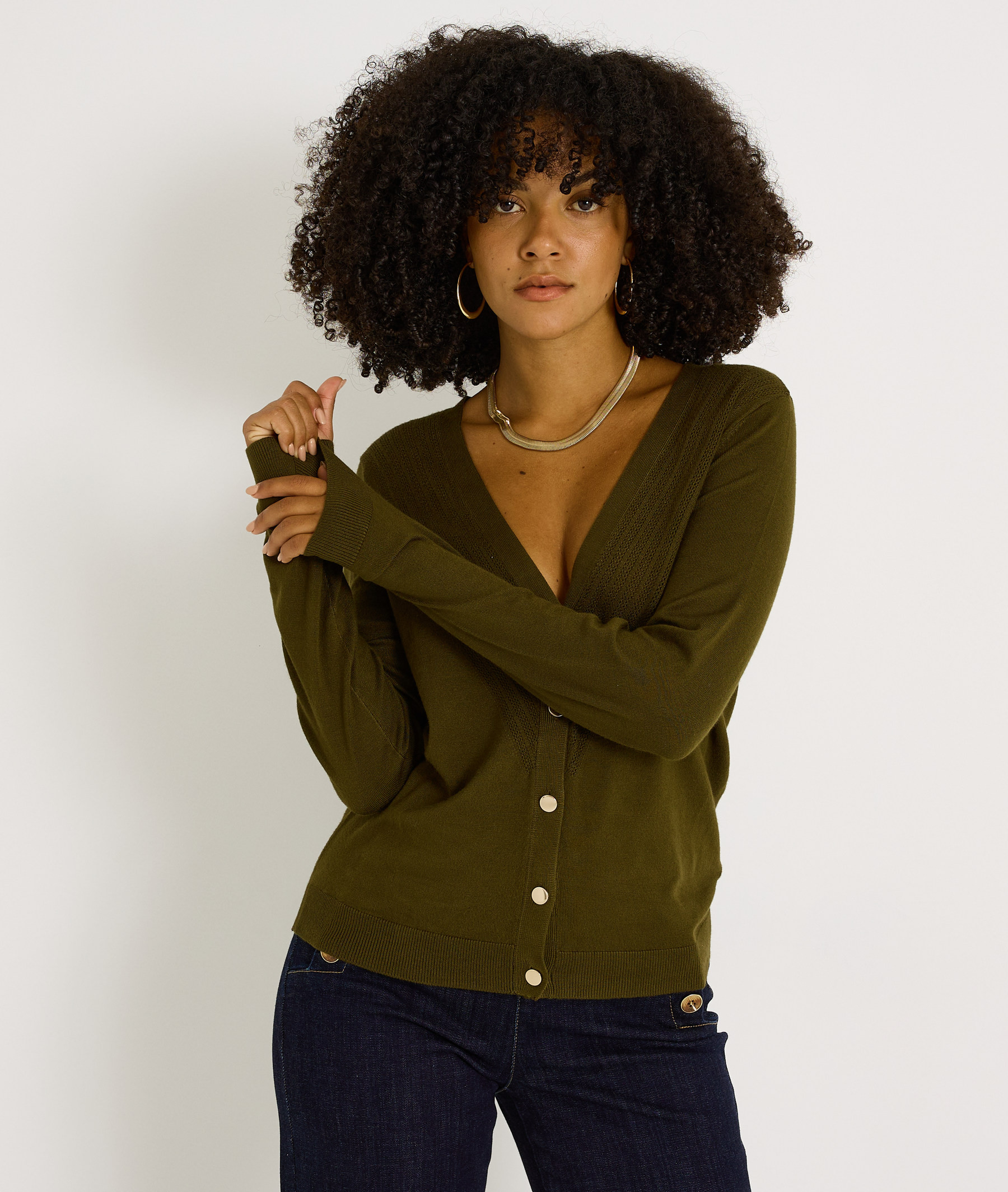 Ce gilet en maille fine se porte avec le col V à l’avant ou dans le dos, offrant deux styles en une seule pièce. Sa matière douce et légère assure confort et élégance pour vos tenues.