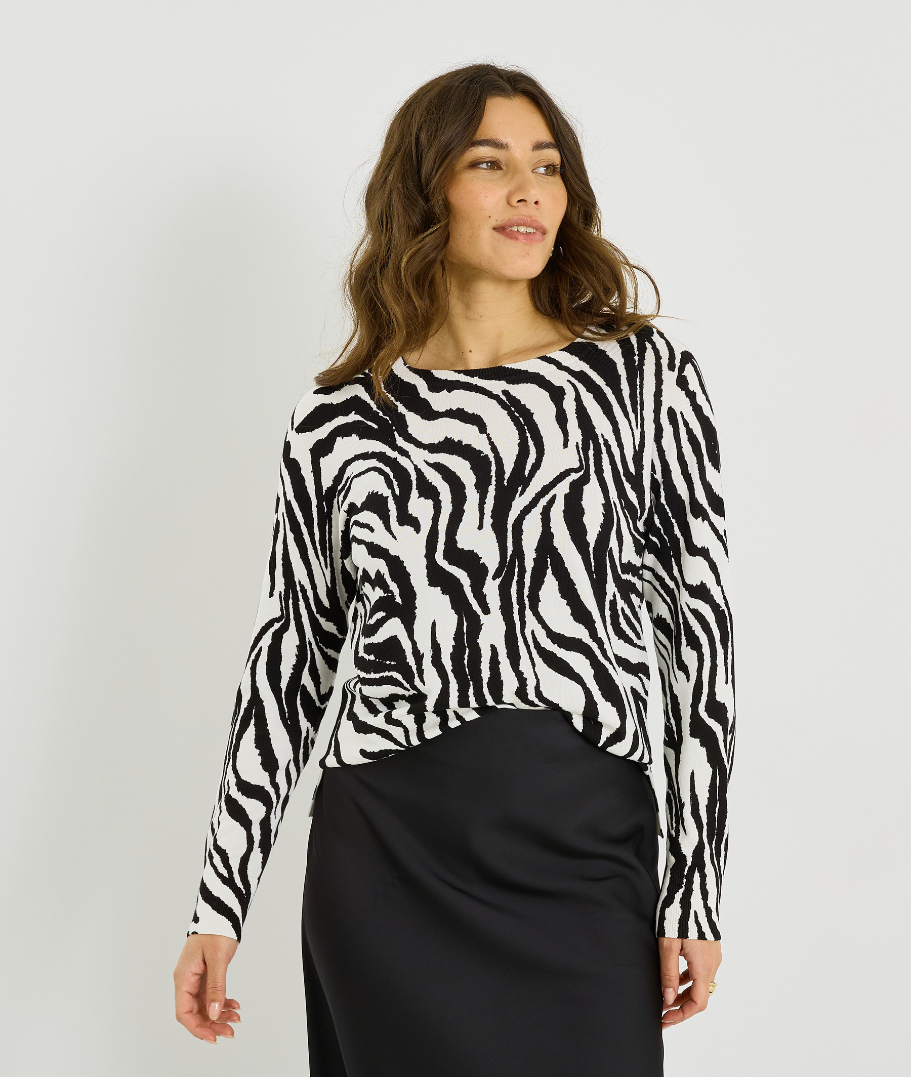 Ce pull à col rond se distingue par son imprimé animal qui apporte caractère et style à vos tenues. Sa coupe confortable et sa maille en font une pièce idéale pour compléter vos looks.