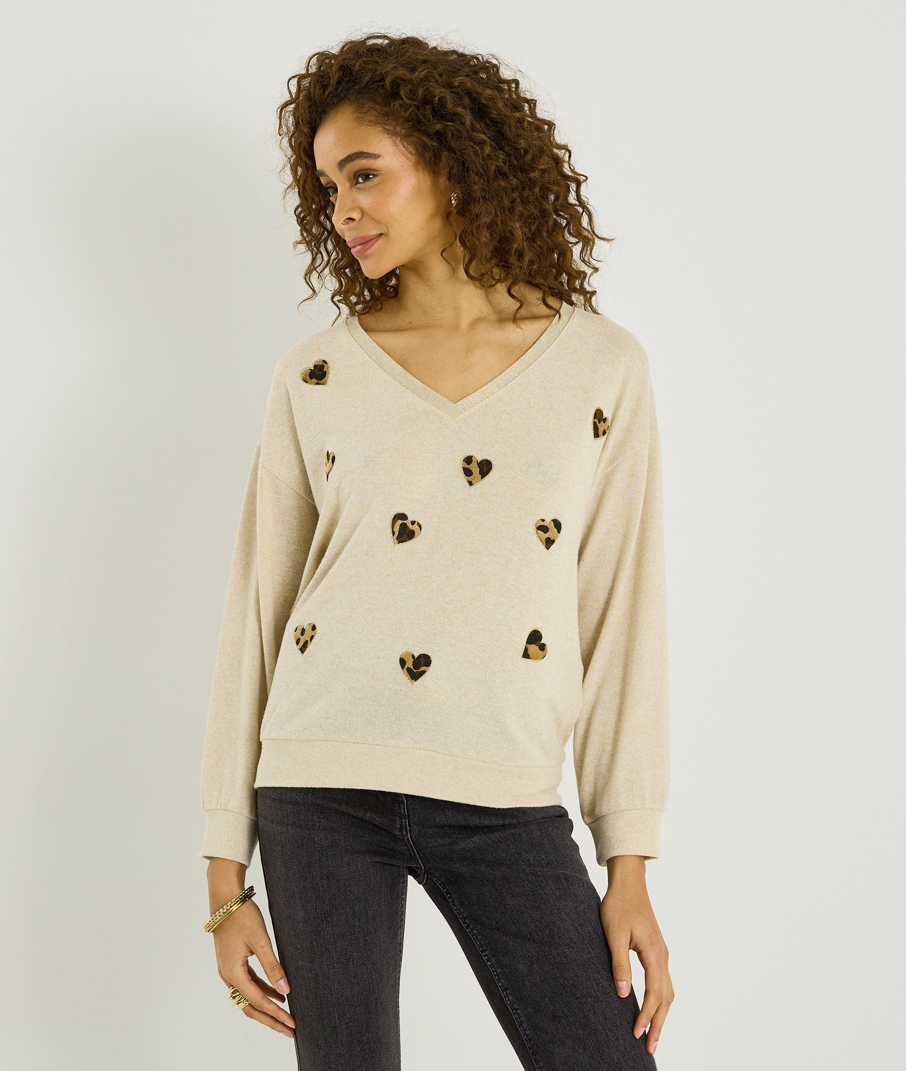 Ce t-shirt associe des cœurs à imprimé léopard pour une touche originale et pleine de caractère. Sa coupe simple en fait un modèle idéal pour compléter vos tenues.