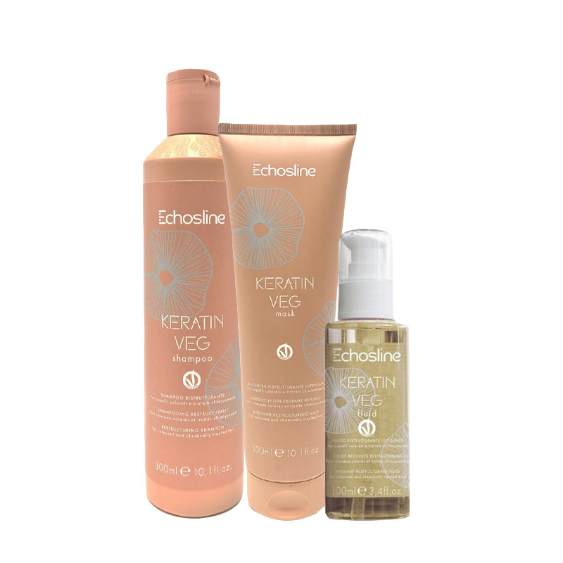 ECHOSLINE Kit Keratin Veg Shampoo 300ml + Mask 300ml + Fluid 100ml