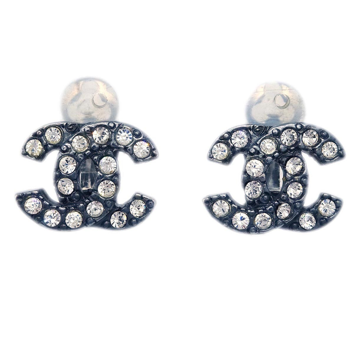 Boucles d'oreilles clip Chanel CC en métal avec cristal