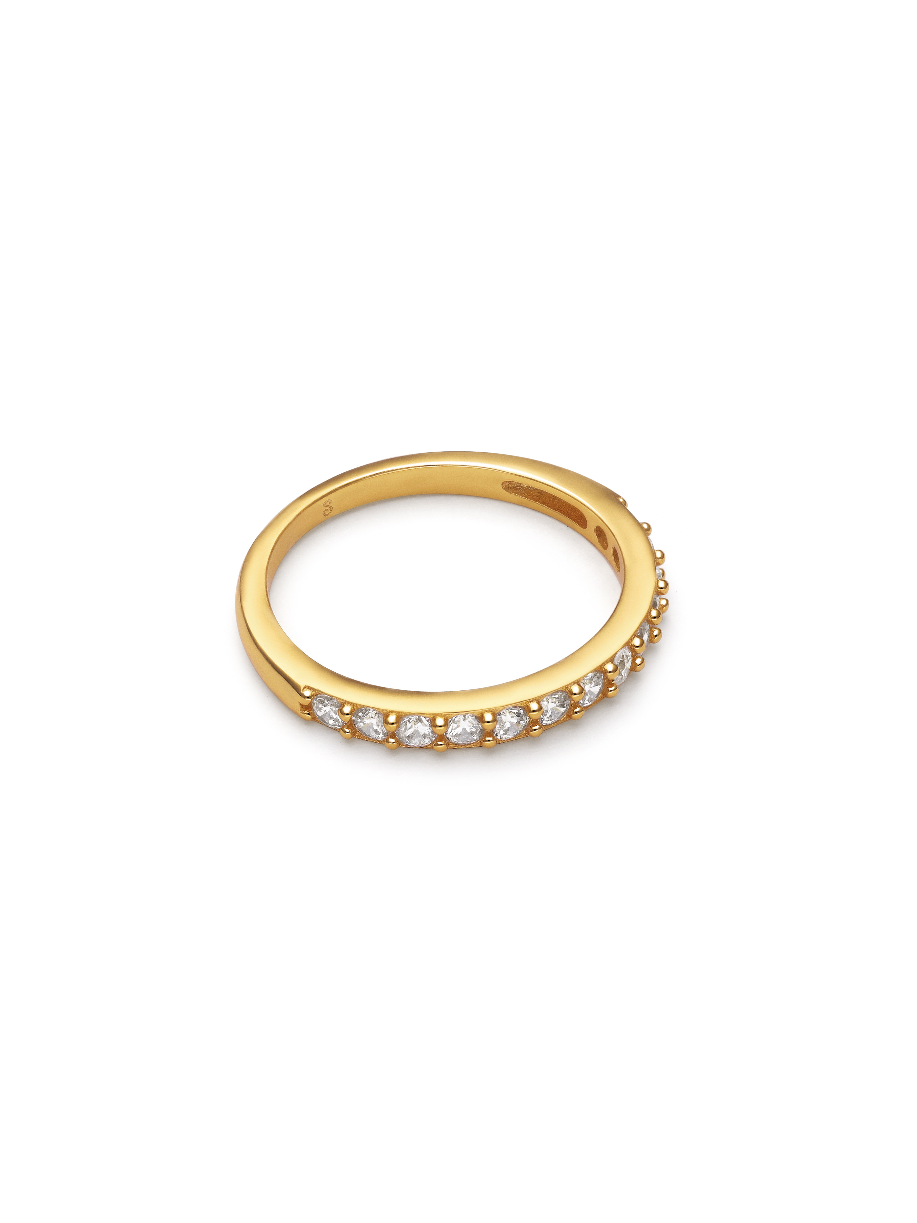Une bague sertie d'oxydes de zirconium étincelants. La bague Shine en argent sterling plaqué or 18 carats est le bijou idéal si vous recherchez une pièce raffinée, élégante et chic.