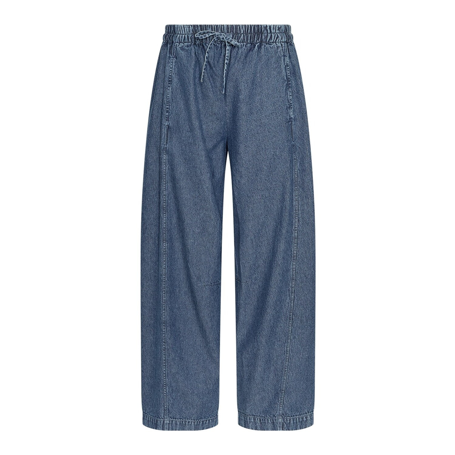 Détails Pantalon large en denim léger. Avec taille élastique et cordon de serrage réglable, poches latérales en biais et jambes droites et larges. Avec coutures visibles devant et derrière. Taille du modèle Le modèle mesure 178 cm et porte une taille S. Longueur Long Hauteur de taille Taille élastique Coupe Coupe décontractée Style Jambe large Description de la couleur Denim foncé, uni Collection Hiver 2025 Composition du matériau 100% coton