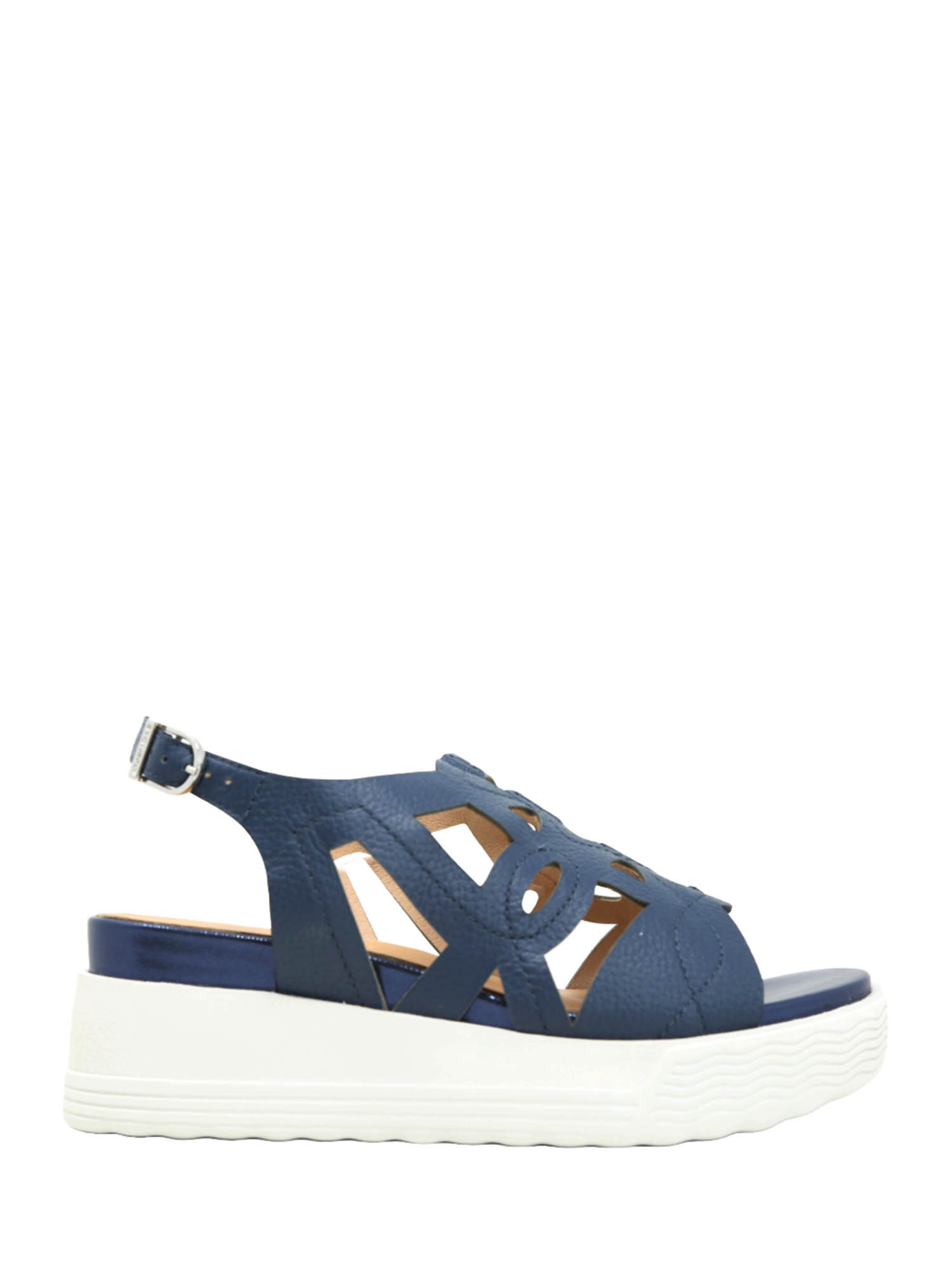 Description : Sandale compensée en cuir pour femme avec coupe régulière.