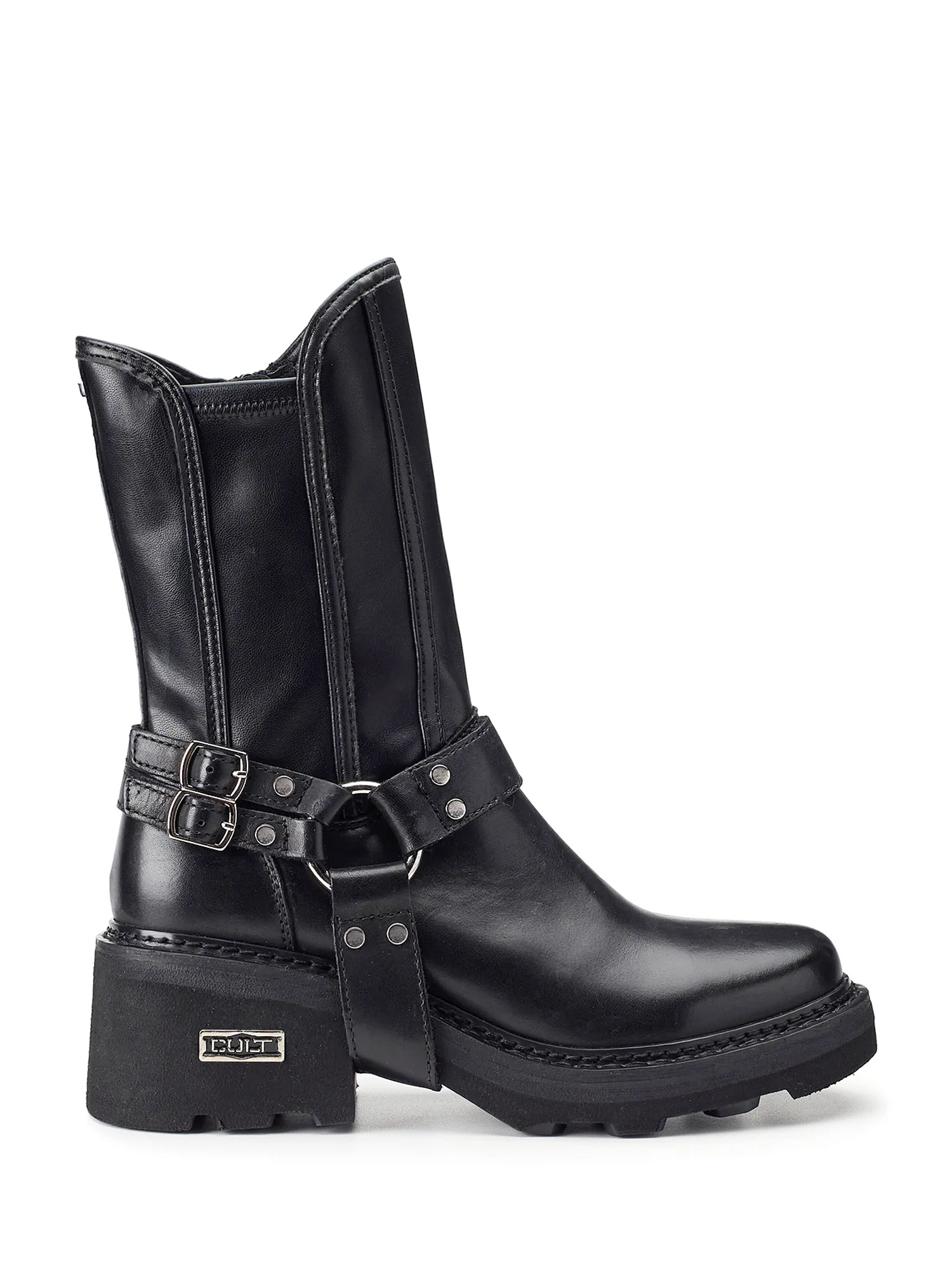 Description : « Utility luxe » est le concept clé des nouvelles bottines pour femme Cult. Impeccablement confectionnés en cuir noir, ils sont enrichis par la guêtre audacieuse à trois brides à anneaux.