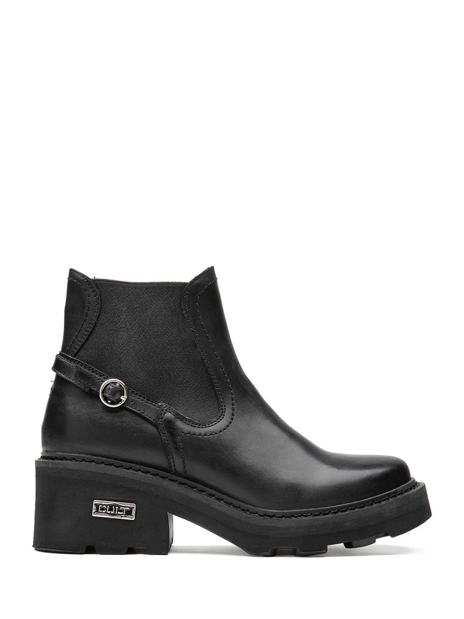 Description : caractère audacieux pour cette nouvelle Beatle by CULT de la ligne GRACE en cuir noir avec une semelle plateforme sculptée pour un impact visuel maximal et une adhérence urbaine.