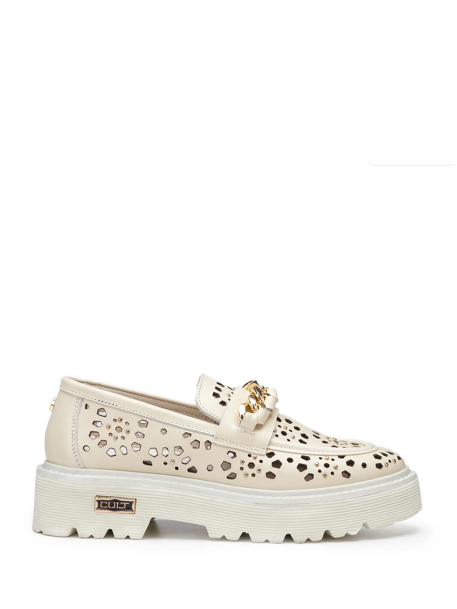 Ces mocassins au style Cult donneront une touche audacieuse à vos looks décontractés grâce également à la maxi chaîne couleur or qui se démarque sur le devant.