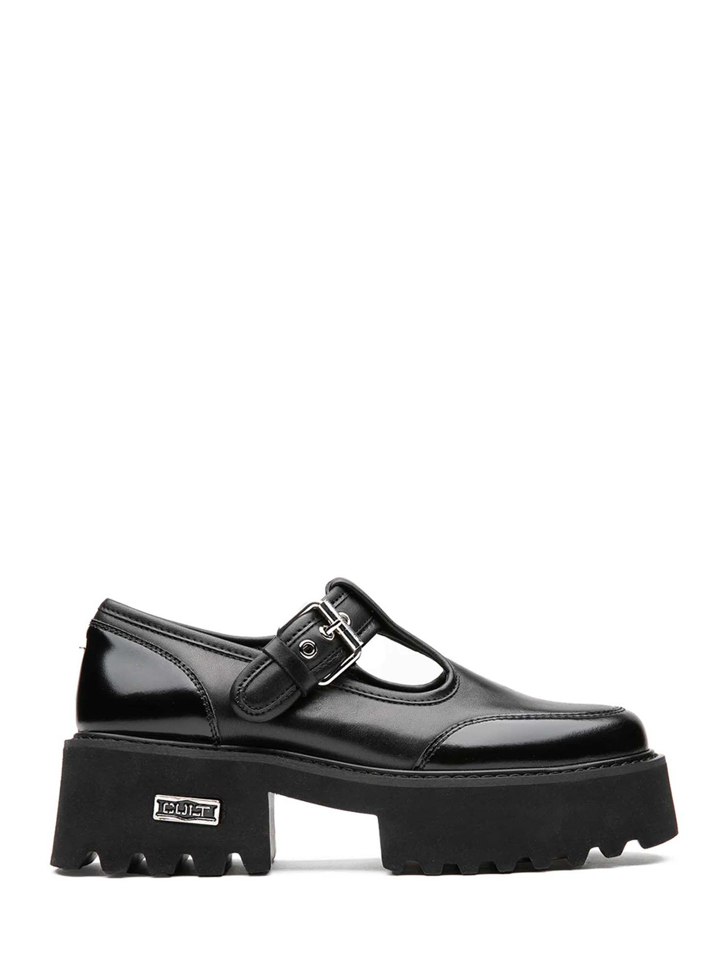 Description : Icône à l'esprit audacieux, ce nouveau modèle de Cult associe un cuir noir brossé et une semelle plateforme crantée pour un look à la fois fort et féminin.