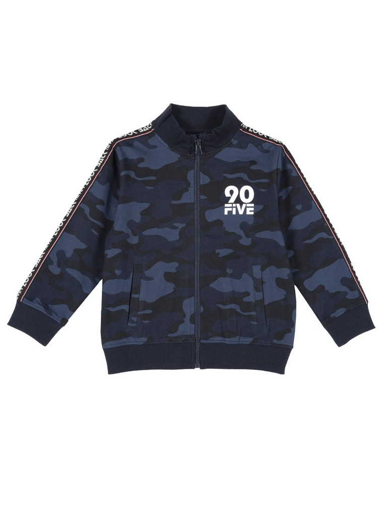 Description: Sweat-shirt en coton doux avec fermeture à glissière, imprimé camouflage.
