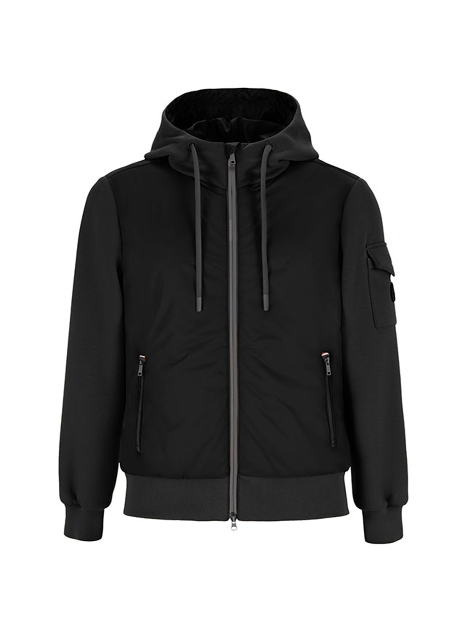 Capuche avec cordon de serrage, bords et ourlets côtelés.