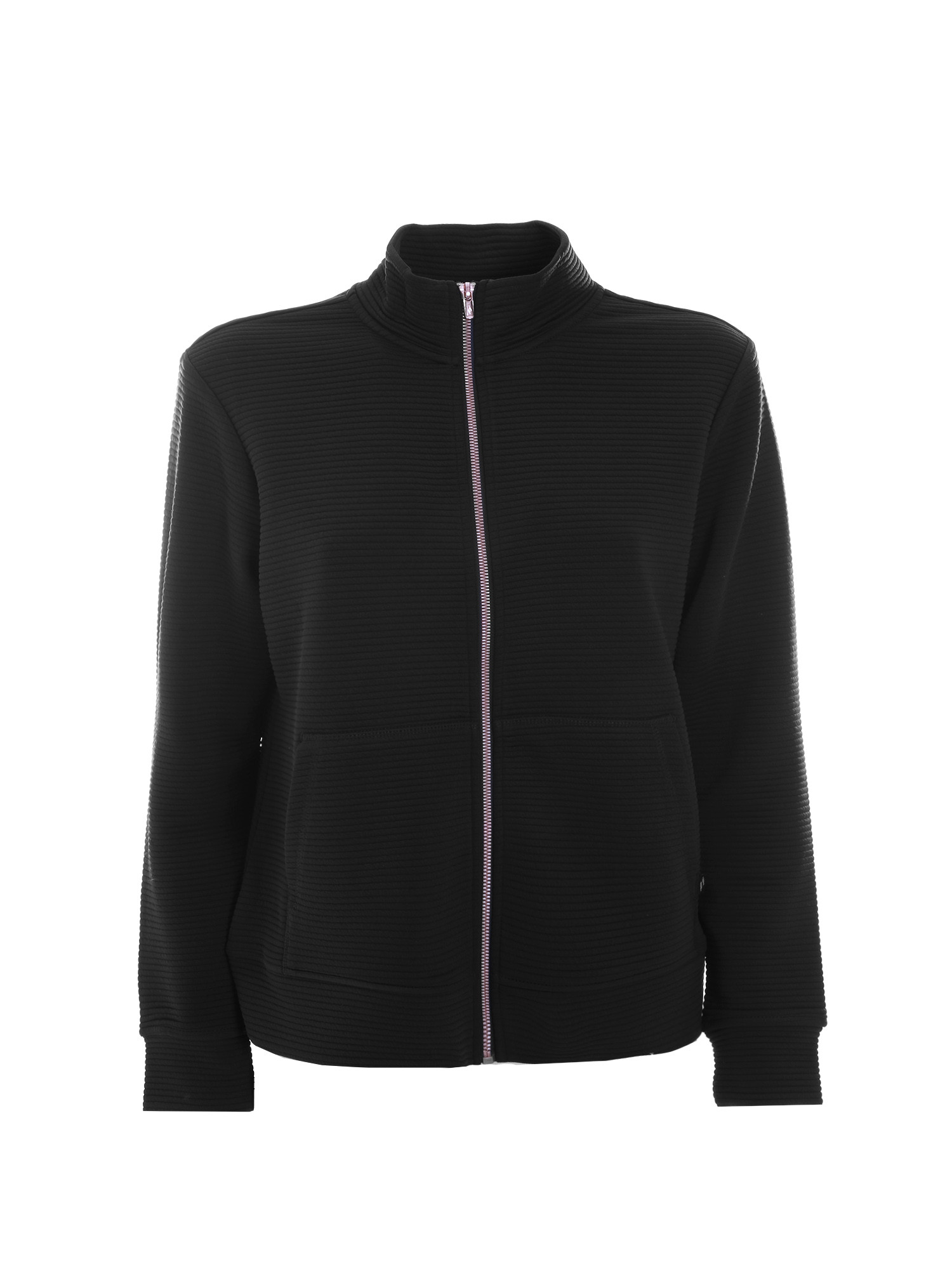 Cette veste en tricot à manches longues est fabriquée à partir d'un tissu polaire brossé Skech-Sweats doux et comporte un demi-col, une fermeture éclair en métal brillant sur le devant et une poche kangourou fendue.