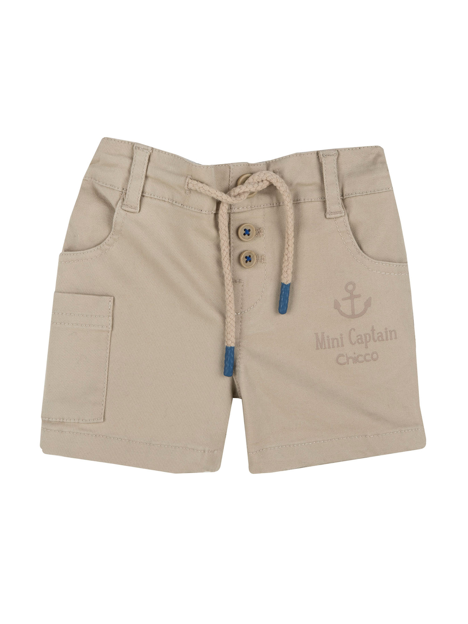 Description : short pour garçon, poches avant confortables et fermeture avec boutons et cordon de serrage.