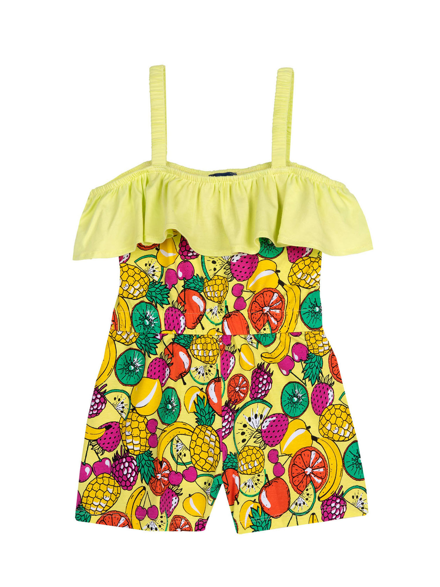 Enrichi d'un joli imprimé all-over, de fines bretelles et de volants sur le devant.