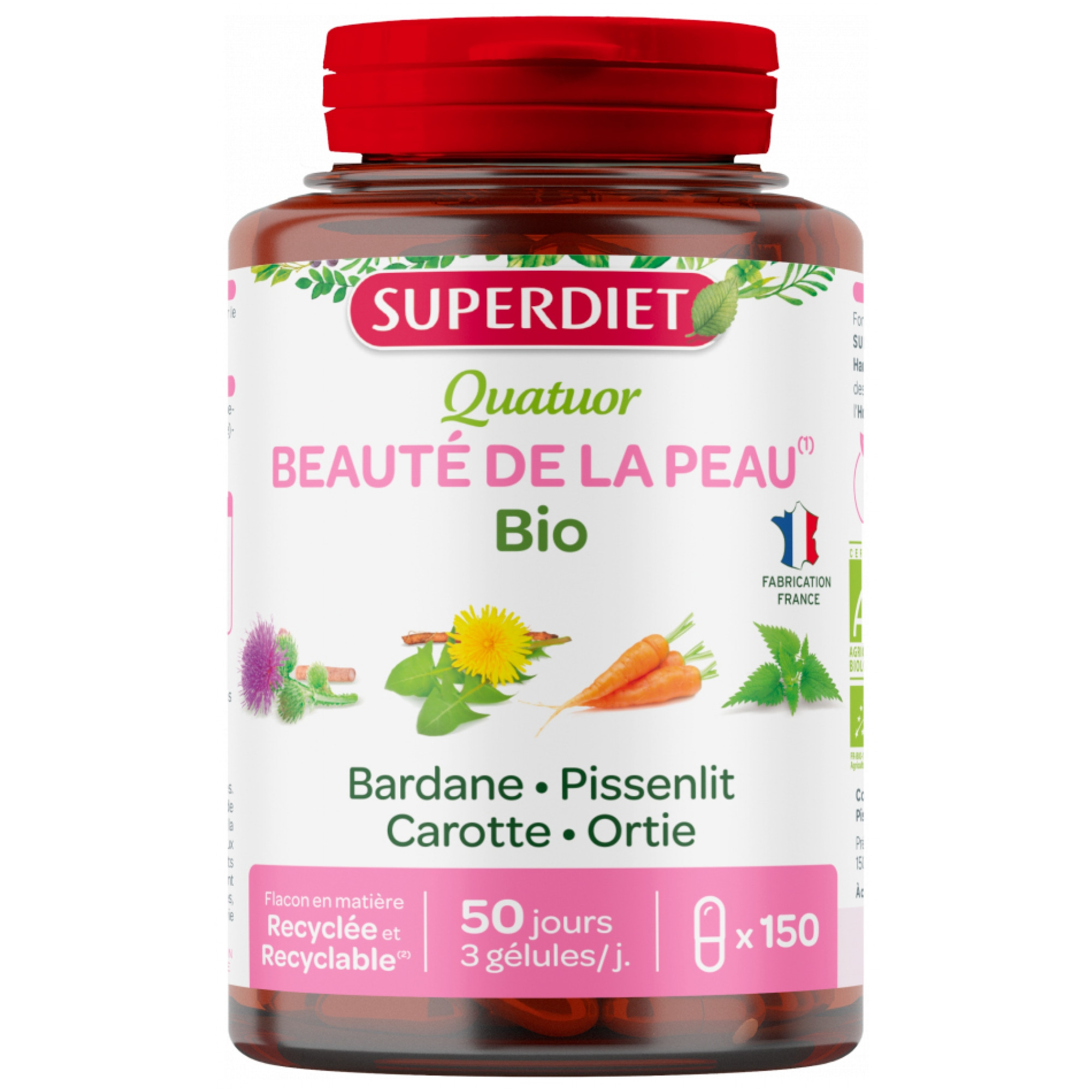 Superdiet Quatuor Bardane Beauté de la Peau Bio Bardane Pissenlit Carotte Fumeterre - 150 Gélules