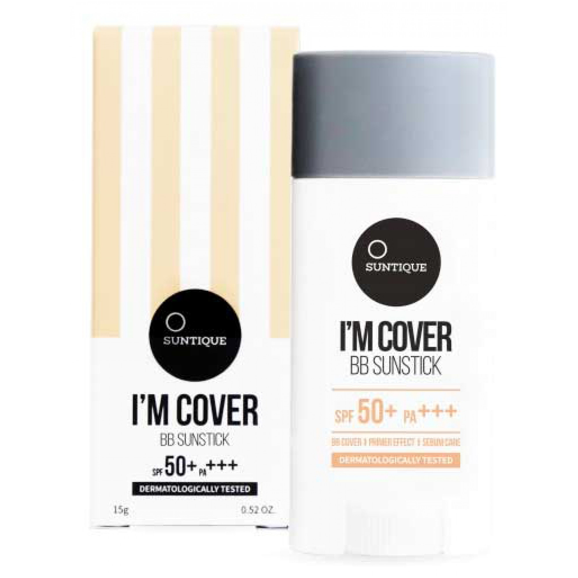 Suntique I'm Cover BB Sunstick Solaire Teinté SPF50+ 15 Grammes combine les propriétés d'une BB crème et d'une base de maquillage pour offrir une couvrance exceptionnelle contre les imperfections tout en tonifiant la peau pour lui donner un éclat radieux Sa texture garantit une tenue longue durée sans oxydation de la couleurEnrichi en céramides et en extrait de centella asiatica, il assure une hydratation et un apaisement de la peau tout en la protégeant des rayons du soleilEn plus de protéger la peau des effets nocifs du soleil, il unifie le teint, camoufle les imperfections et procure une sensation de fraîcheur tout au long de la journée Testé sous contrôle dermatologique