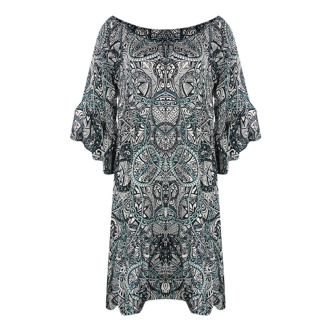 Design/motif: Imprimé. Encolure: Col bateau. Type de manches: Manches ¾, Volants. Composition: 100% Soie.