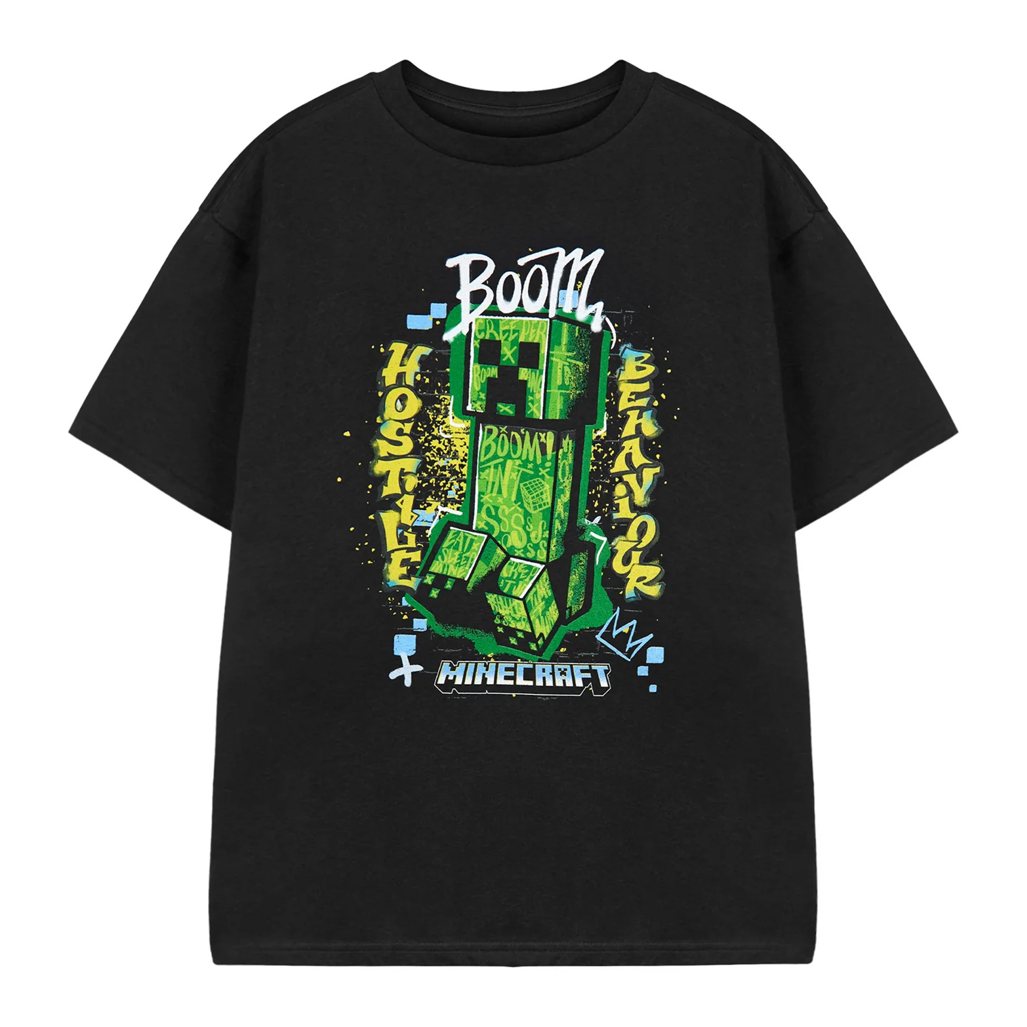 Minecraft - T-shirt manches courtes HOSTILE BEHAVIOUR - Garçon (Noir)