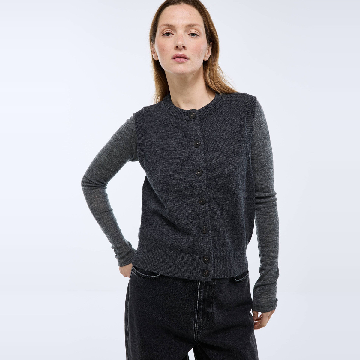 Cardigan sans manches contenant de la laine et du coton- MONOPRIX