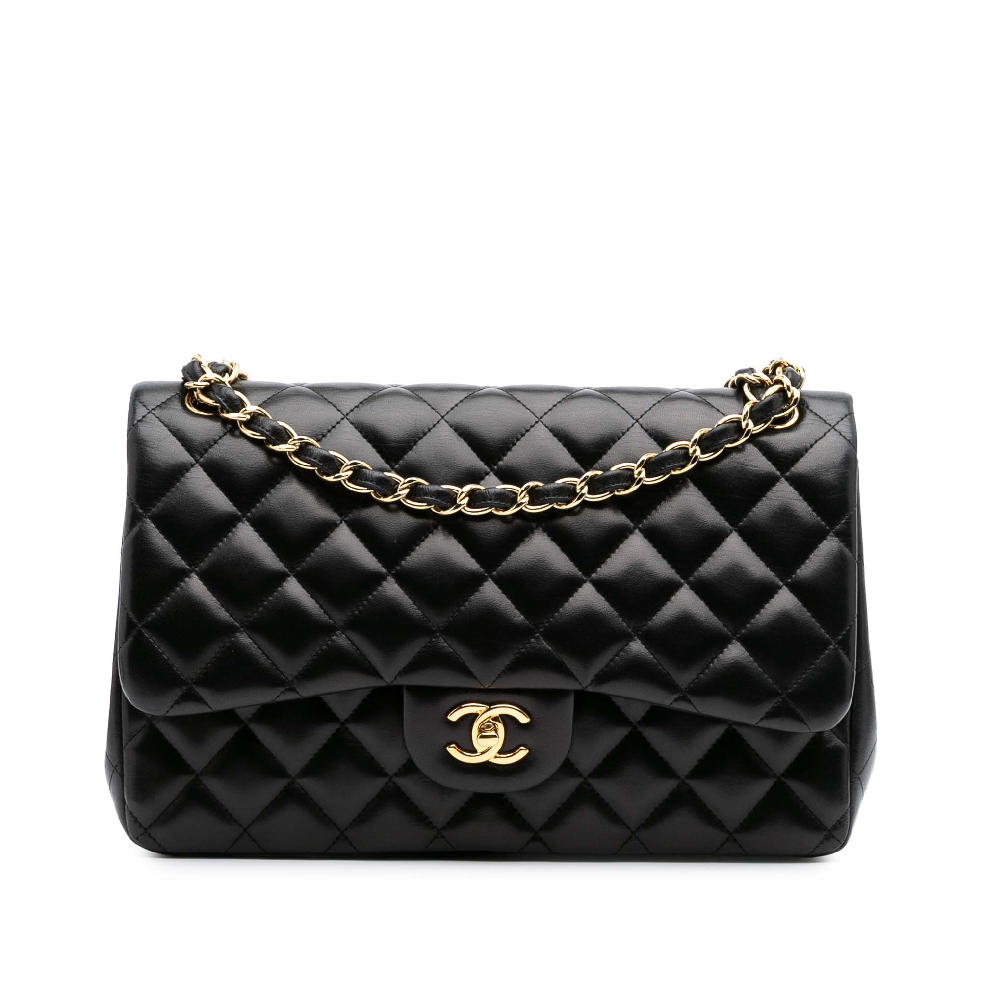 Sac Chanel Jumbo Classic en cuir d'agneau noir, à double rabat.