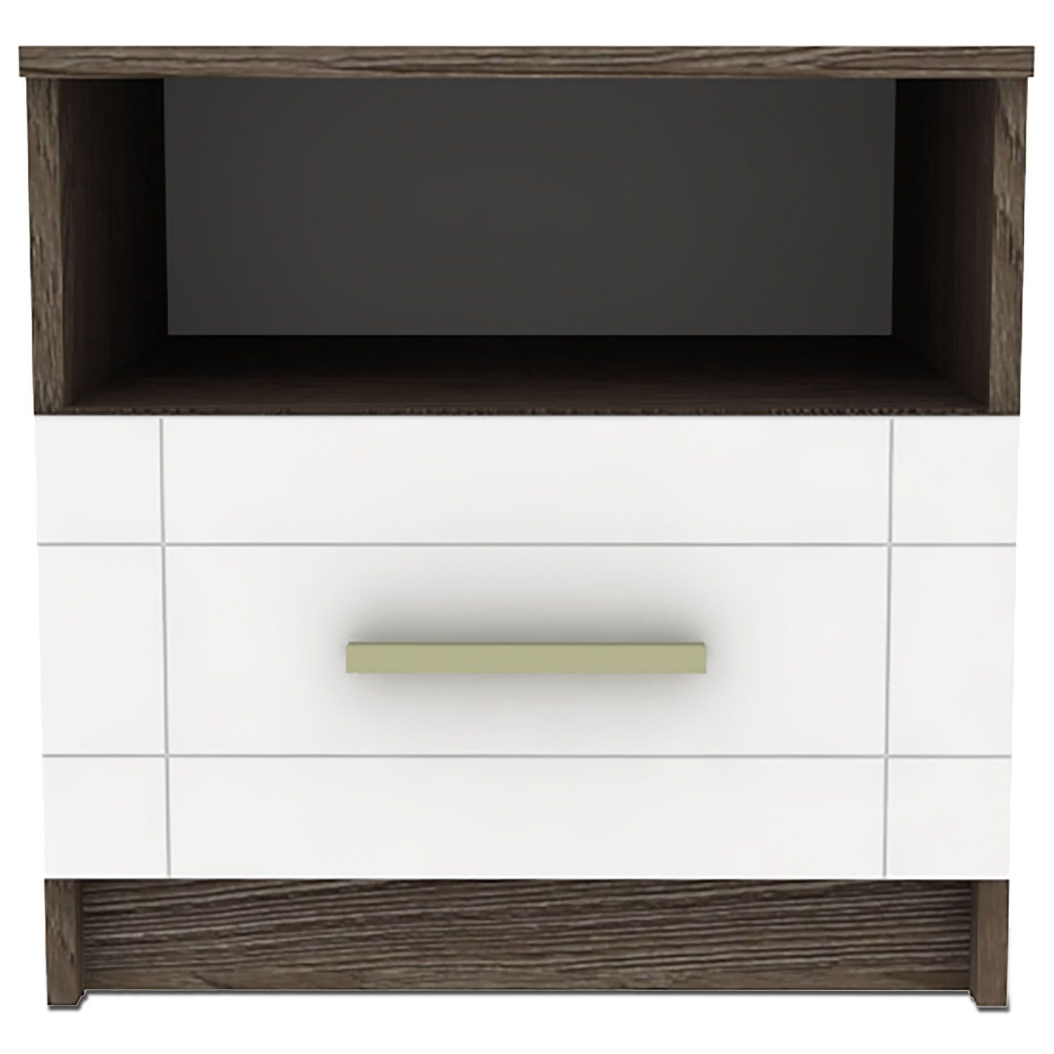Table de chevet 1 tiroir Tenessil Chêne foncé et Blanc