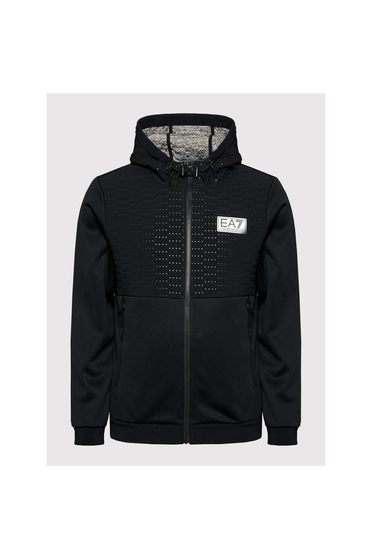 Blouson léger à capuche - EA7. Tons: les NOIRS. Coupe: droite. Col: avec capuche. Manches: longues. Logo: patché. Poche: 2. Fermeture: zip. Entretien: Lavage en machine. Conseil: prenez votre taille habituelle. Matière: 100% Polyester.
