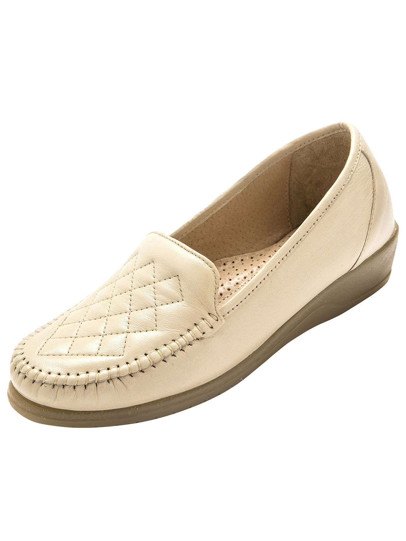 Des mocassins PEDICONFORT ultra-souples et à montage intégral (sans coutures blessantes à l'intérieur). Dessus : cuir pleine fleur. Plateau cousu main matelassé. Bords gansés. Doublure et semelle intérieure : cuir. Voûte plantaire pour bien soutenir le pied. Semelle souple compensée : élastomère. Talon 3 cm environ. Largeur confort. Si vous hésitez entre 2 pointures, choisissez la plus grande. CUIR PLEINE FLEUR