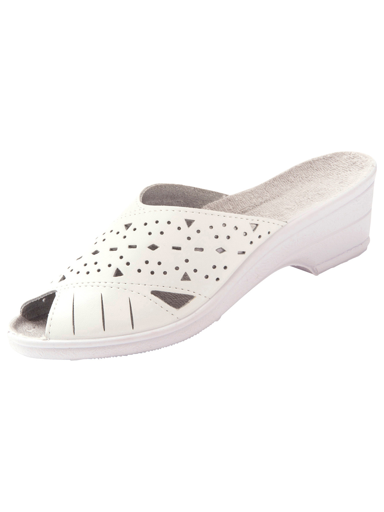 Des mules idéales en été ! Dessus : cuir ajouré. Non doublé. Semelle intérieure : éponge douce, confortable et absorbante. Semelle : élastomère. Talon : 5 cm env. Largeur confort (F). CROUTE DE CUIR